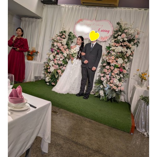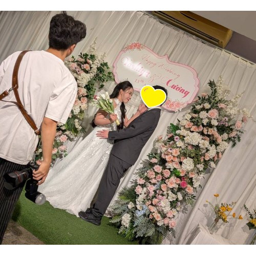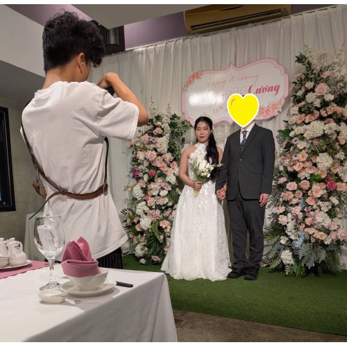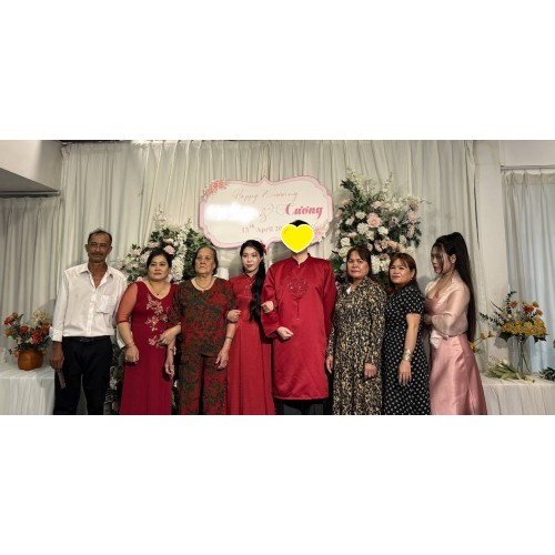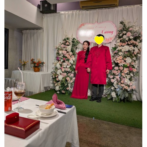 その後、深紅のアオザイに身を包んだお二人が登場すると、